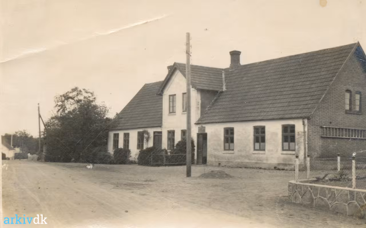 bygningen ligger stadig på stedet og genkendes nemt som den gl. rytterskole.