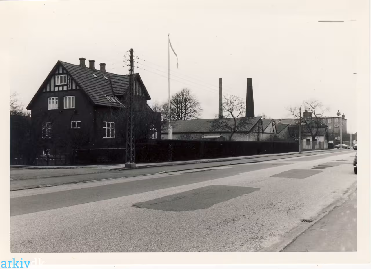 Bagved hans hus ses Carl Flensburg & Sebbelovs vævesale og fabrik. På den anden side af Saltværksvej - længst til højre på Amager Strandvej - ligger Plyssen. |