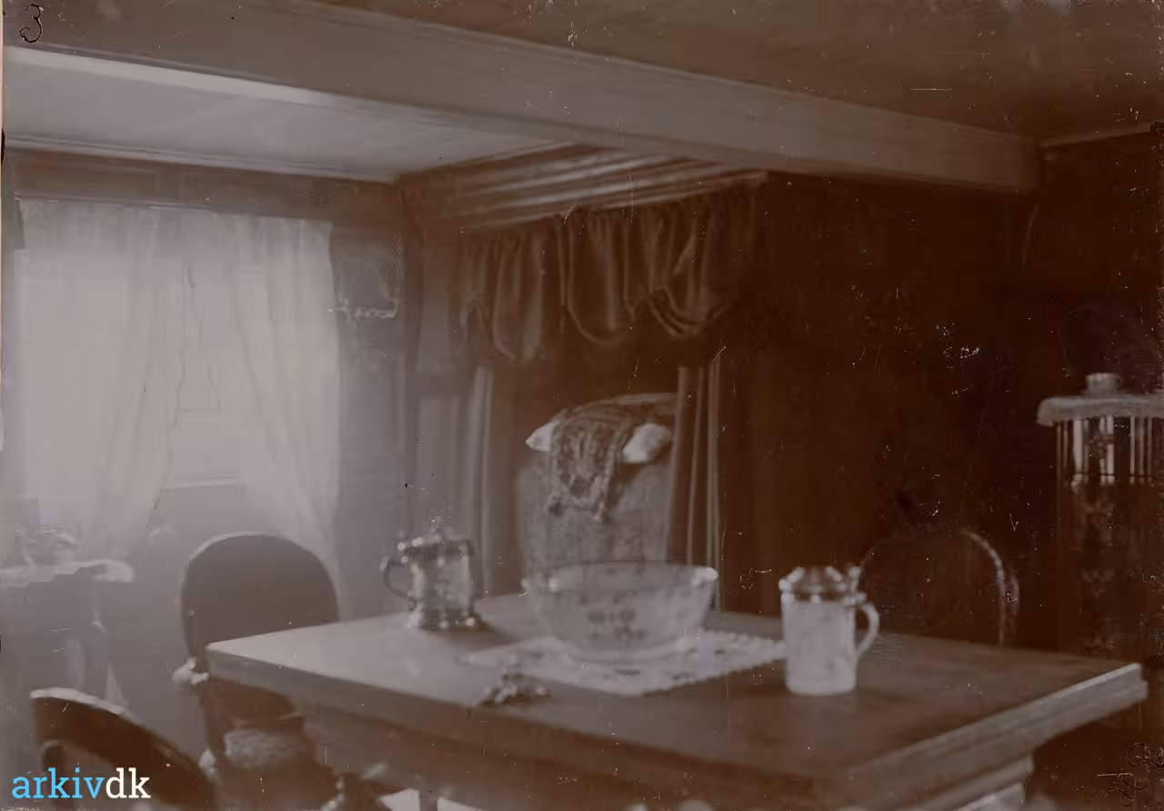 Storstue fra den gamle Ladegård som nedbrændte 1912.