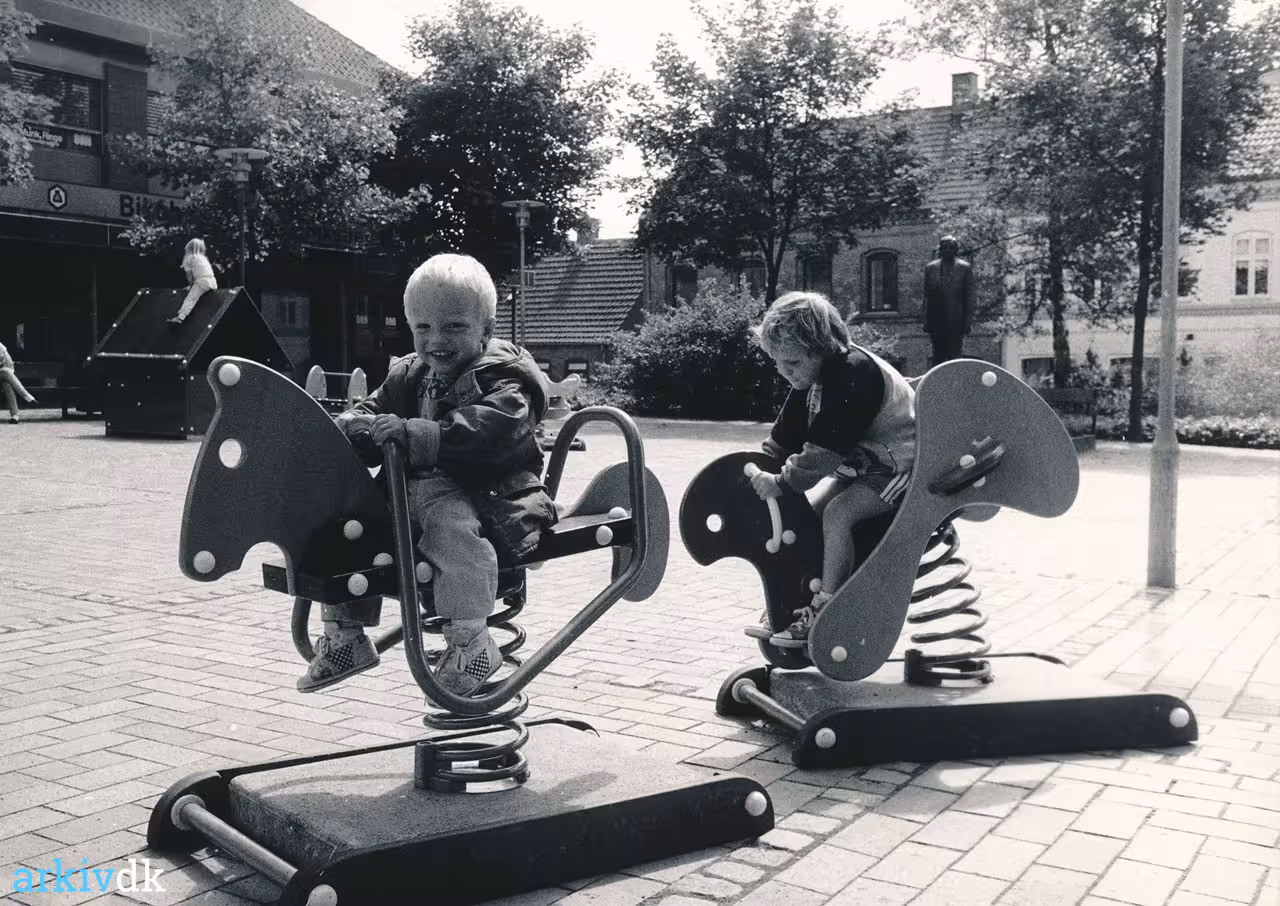 Ringe Butikshandlerforening. Kompan. Legeredskaber på torvet.