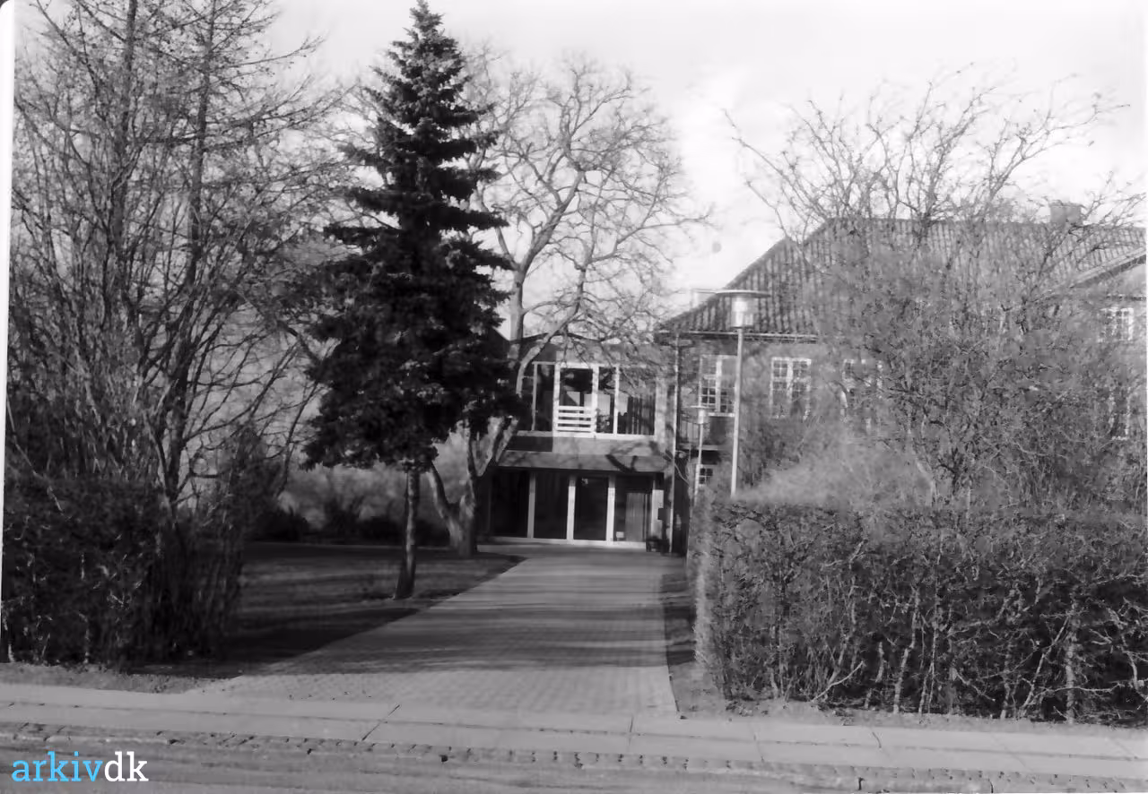 Beskrivelse Her ses indgangspartiet med den oprindelige bygning til De gamles hjem i Haslev liggende til højre i billedet.