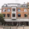Fra venstre lidt af Østergade 5, 7 A.(Løveapoteket.), 7B, 9, ......, lidt af 13 (den ene kuppel)