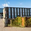 Hvidt metalgitter med ugle, Brinck Seidelinsgade 10, Hjørring - detalje.